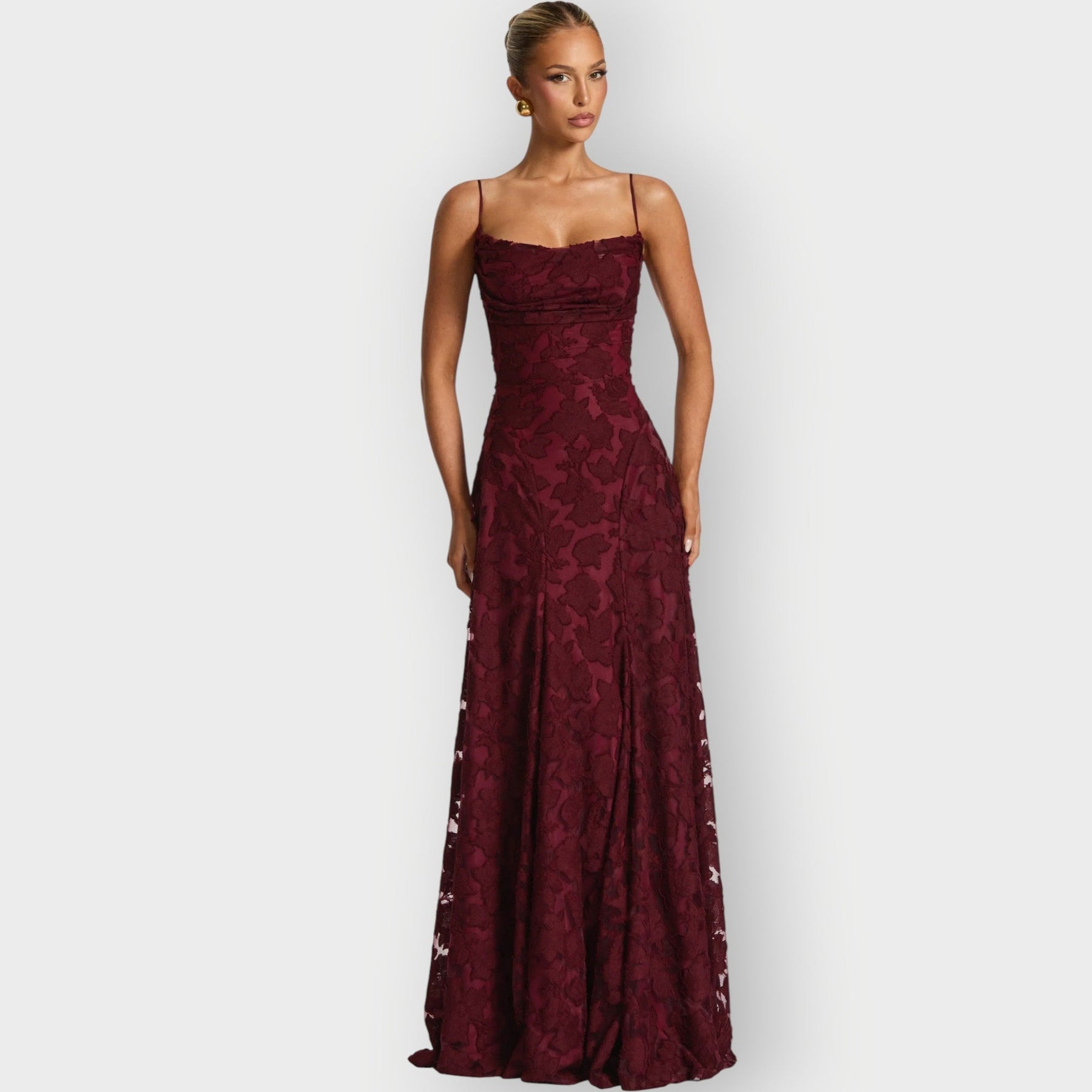 • Delicate floral detailing that enhances the gown's romance and visual appeal.